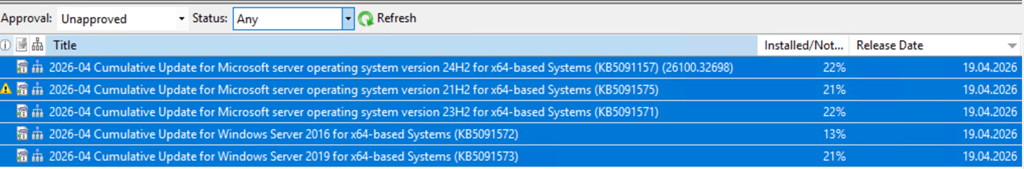04-2026 Patchday UpdateId numbers to import into WSUS (DC Domain Controller Reboot fix)