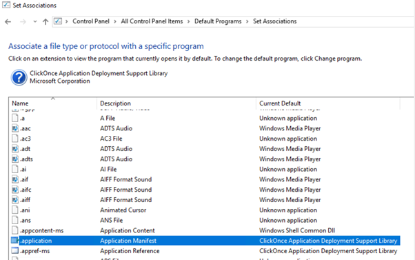 1) Check if CLickOnce Application Manifest “.application” extension is BOUND to which Browser (IE or EDGE)