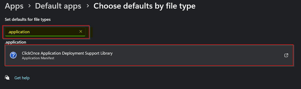 5. Repeat step 3, select ClickOnce Application Deployment Support Library and Always use this app and set it as the default application.