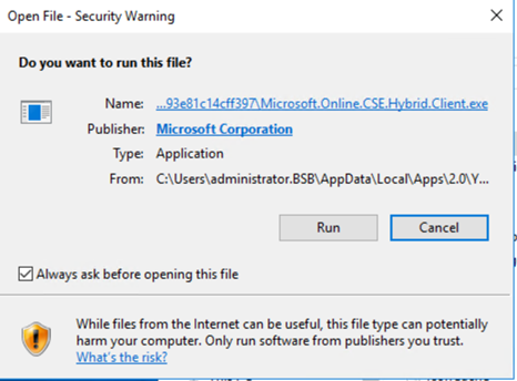 Quick Solution > This will change the Default browser that ClickOnce Apps use make sure you don’t’ have any other APPS on the server that uses that deployment technology. Otherwise use the workaround at the of this post with a second temporary “new file Extension” just for the Hybrid Wizard start.