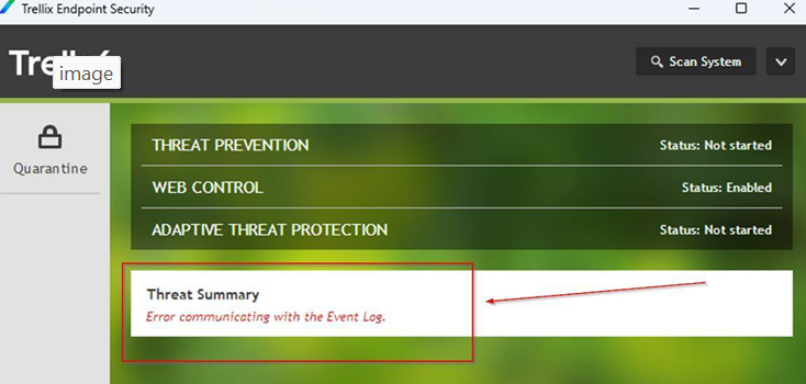 ENS Oberfläche zeigt Fehler: Error commincating with the Event Log (Windows Defender ist aktiv)