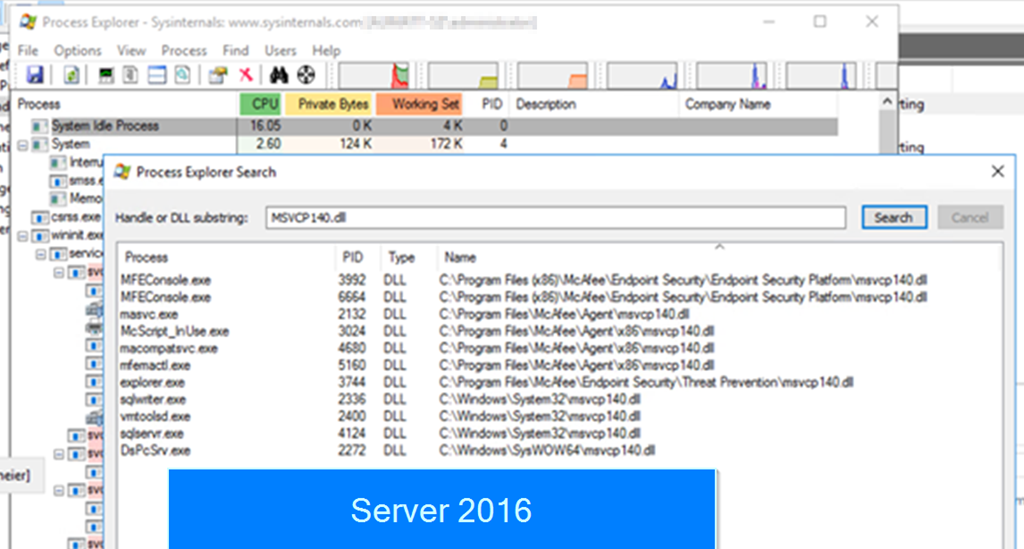 Process Explorer and FIND MSVCP140.DLL on a Server OS 2016 (Greetings to Gilles 😉