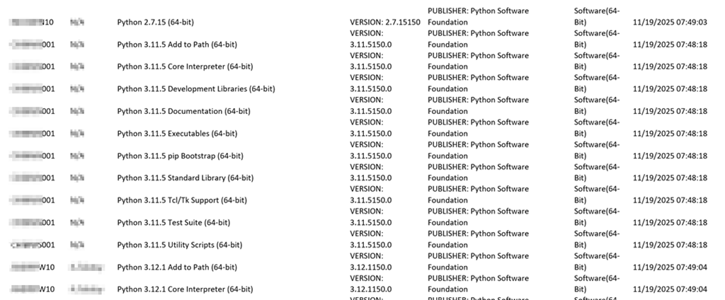 Trellix SIR inventory (This should not be the reason and helped us to find the Python machines quickly)